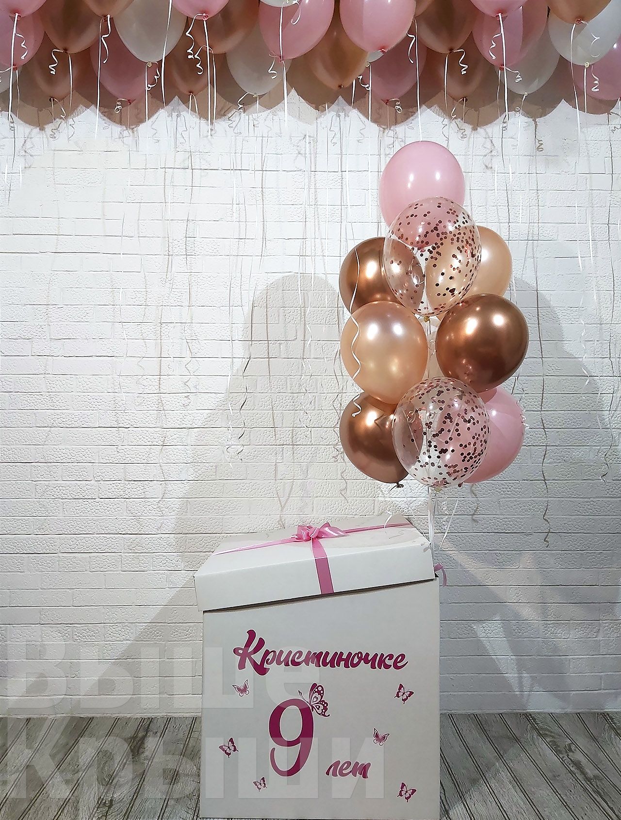 Коробка с шарами "Розовое золото" (50 шариков)