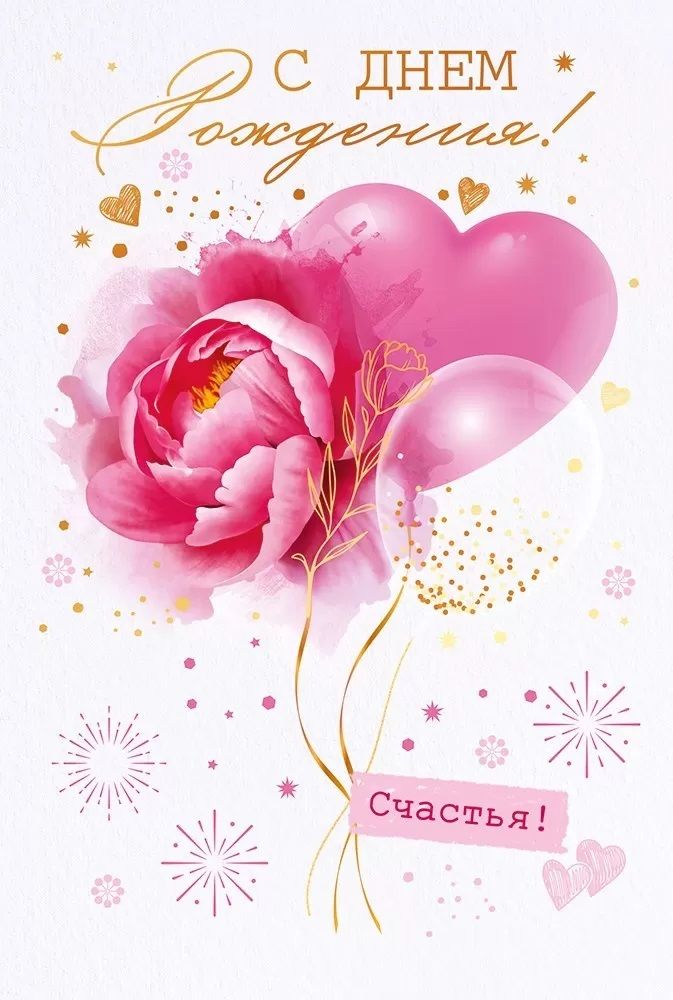 Открытка, С Днем Рождения, Счастья! (Металлик)