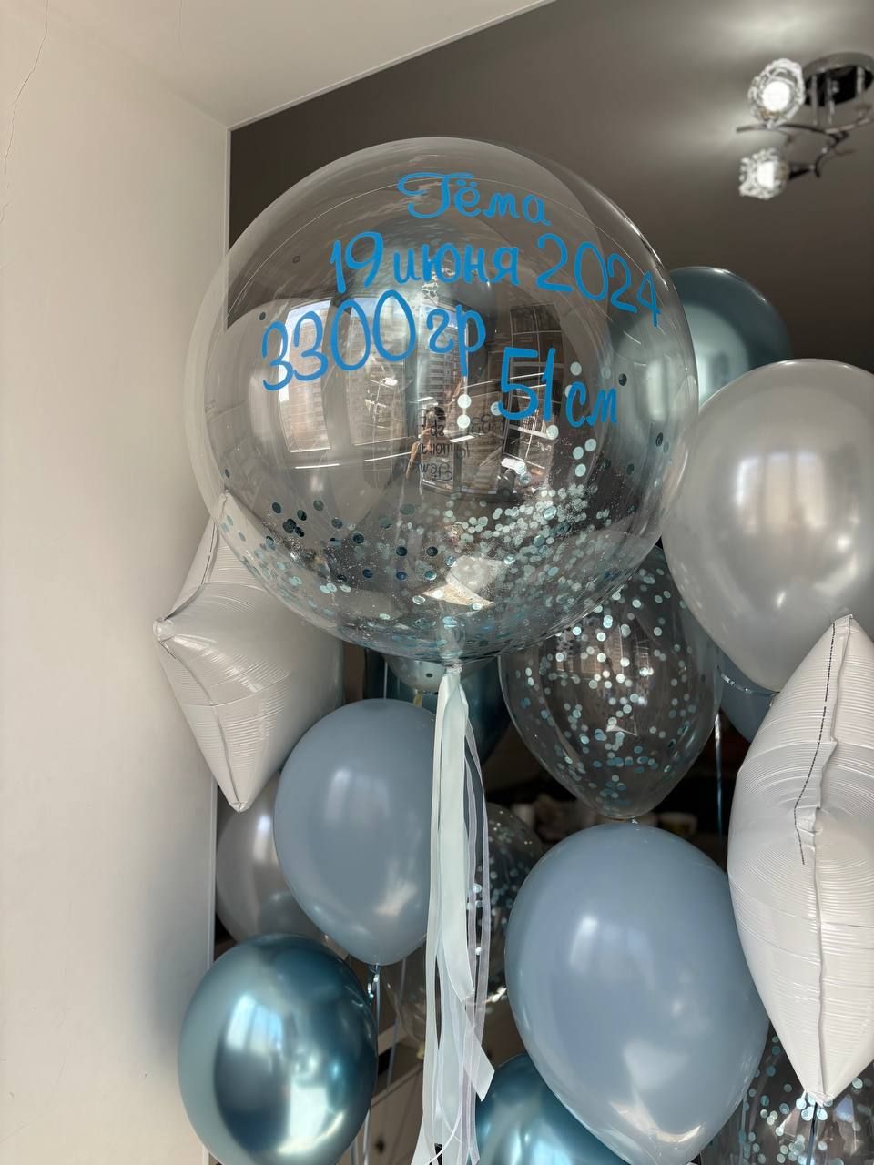 • 1 баблс 50-60см с конфетти и надписью;