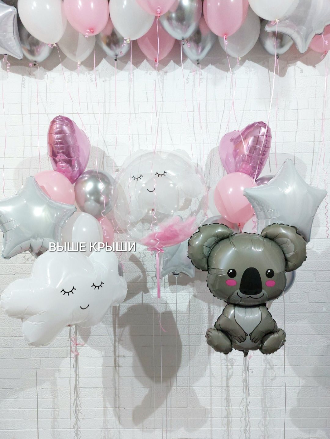Сет "С коалой" — это воздушное воплощение нежности и лёгкости, идеально подходящее для выписки вашего малыша из роддома. Центральным элементом композиции выступает изящный баблс, наполненный нежными перьями и украшенный надписью, которая может включать метрику вашего малыша: его имя, дату и время рождения, вес и рост. Фольгированные облака и звёзды создают атмосферу сказочного неба, добавляя в этот момент ощущение чистоты и гармонии.