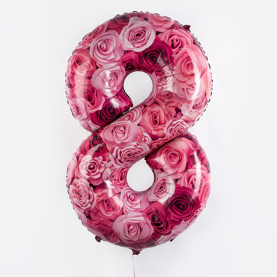 Шар цифра 8 Розы — идеальный выбор для украшения праздника 8 марта! Этот яркий и стильный фольгированный шар украсит любое торжество и подарит незабываемые эмоции. Шар выполнен из высококачественной фольги, что обеспечивает долговременное удержание гелия и надёжность клапана.