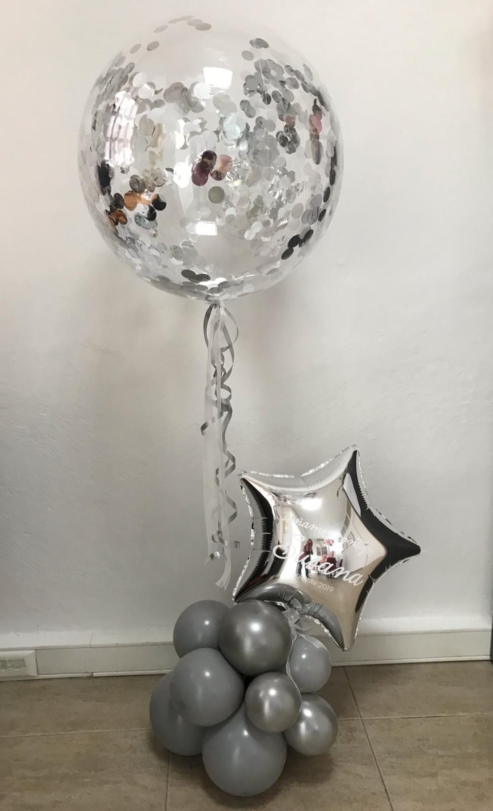 Фольгированный шарик в форме звезды с персональной надписью подчеркнёт особенность торжества, а прозрачный баблс с конфетти создаст лёгкий и праздничный эффект. Вместе эти шары создают воздушную и блестящую композицию, которая точно привлечёт внимание и подарит радость виновнику торжества.
