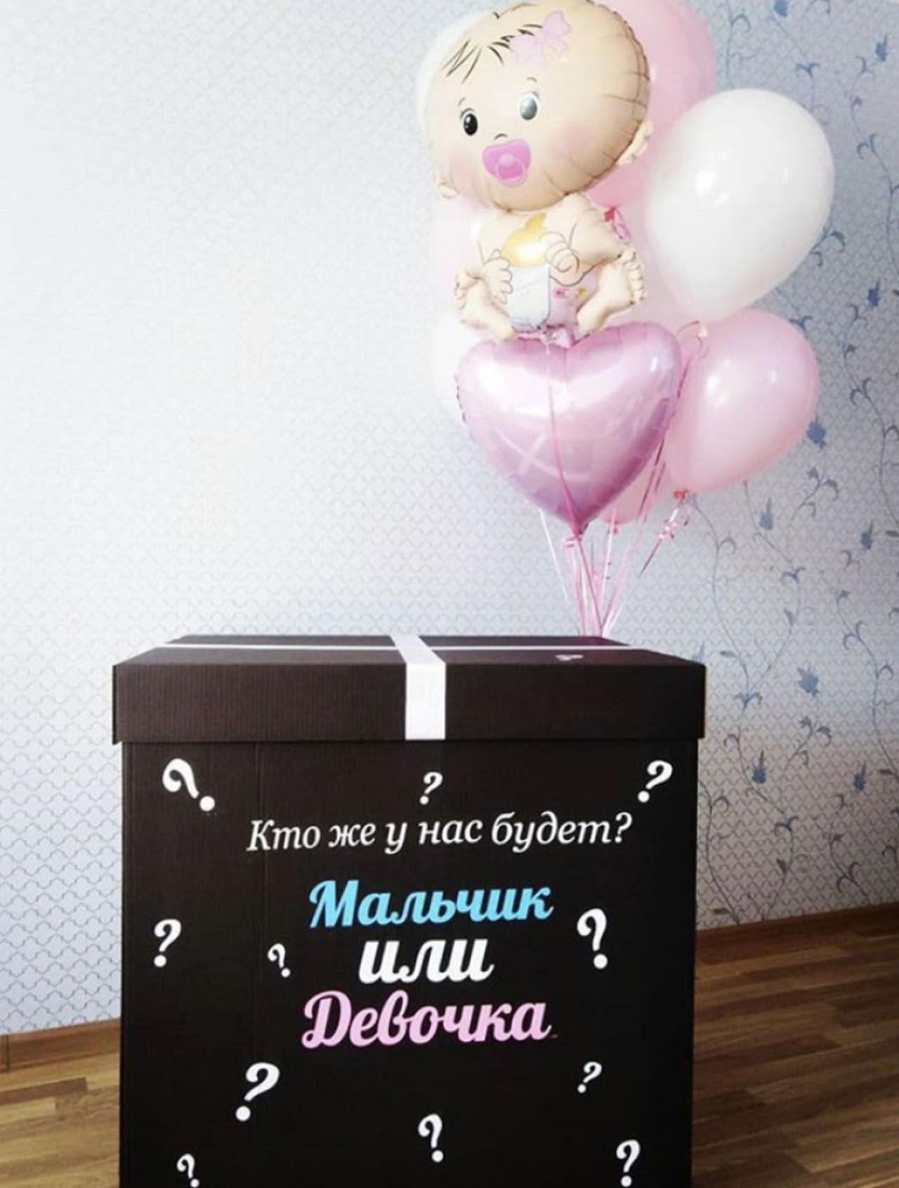 Этот стильный и загадочный сет добавит вашему празднику особую атмосферу. Чёрная коробка с индивидуальным декором и надписью на ваш выбор создаёт эффект сюрприза, а фонтан из воздушных шаров, надутых гелием, дарит радость и веселье всем присутствующим. Милый шарик в форме пупсика станет прекрасным акцентом, подчёркивая тематику мероприятия.