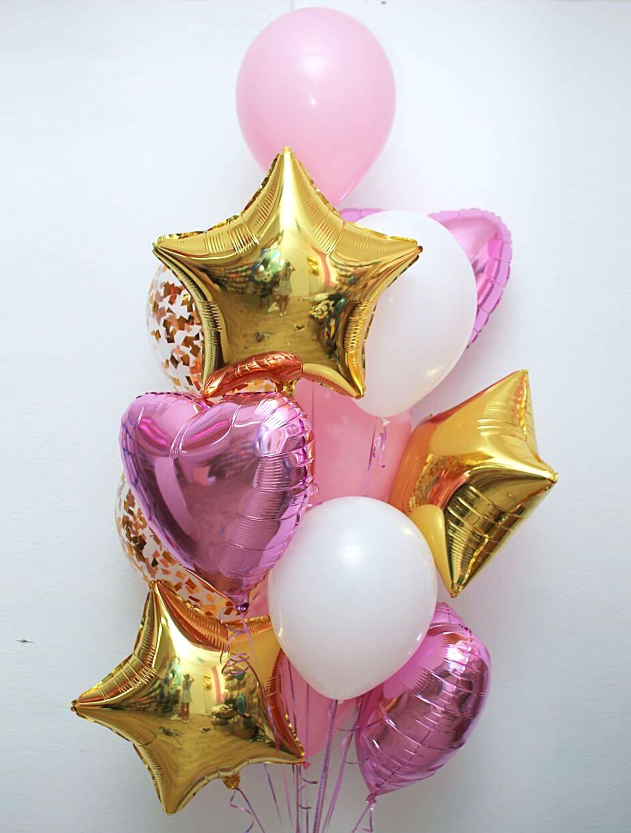 Сет "Милашка" — это нежная и очаровательная композиция, в которой фольгированные звезды и сердца переплетаются с пастельными оттенками, создавая атмосферу легкости и радости. Этот набор воздушных шаров дарит ощущение тепла и заботы, как будто создан для того, чтобы подчеркнуть светлые моменты появления маленькой принцессы на свет.