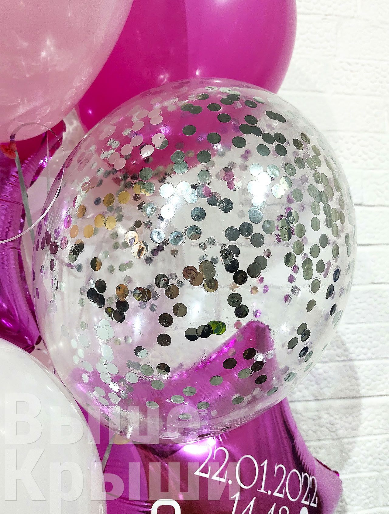 - 3 прозрачных шарика с серебристым конфетти;