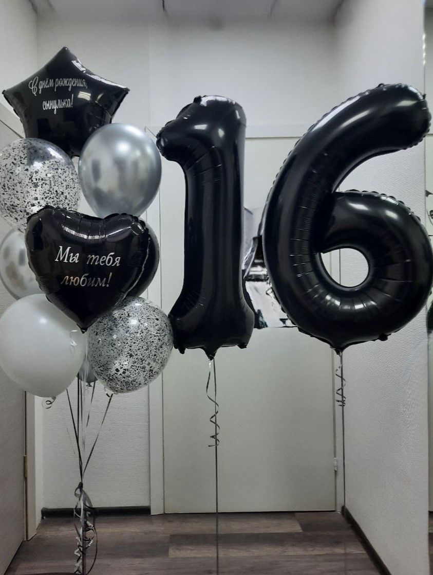 Сет «Чёрный Сапфир» — это стильная и элегантная композиция, которая создаст атмосферу сдержанного шика и торжественности. В этом наборе выделяются чёрная звезда и сердце, украшенные индивидуальными надписями, что делает его идеальным для персонализированного поздравления. Чёрные цифры придают композиции завершённость и подчёркивают важность момента.