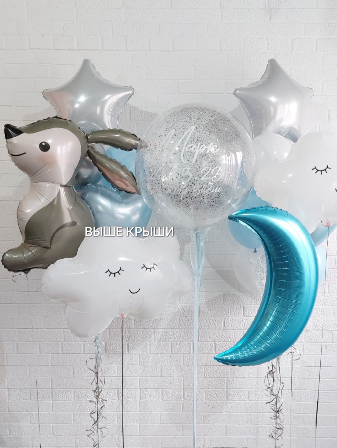 Сет "Зайчик мальчик" — это волшебная композиция, которая создаст атмосферу уюта и радости в день выписки вашего малыша из роддома. Главным украшением сета является очаровательный баблс, наполненный конфетти и дополненный трогательной надписью, которую вы можете выбрать сами. Чаще всего на нём указывают метрику новорожденного: его имя, дату и время рождения, вес и рост, что придаёт этому моменту особое значение. Фольгированный зайчик и другие фигуры, такие как полумесяц и облака, придают сету сказочный характер, добавляя нотки тепла.