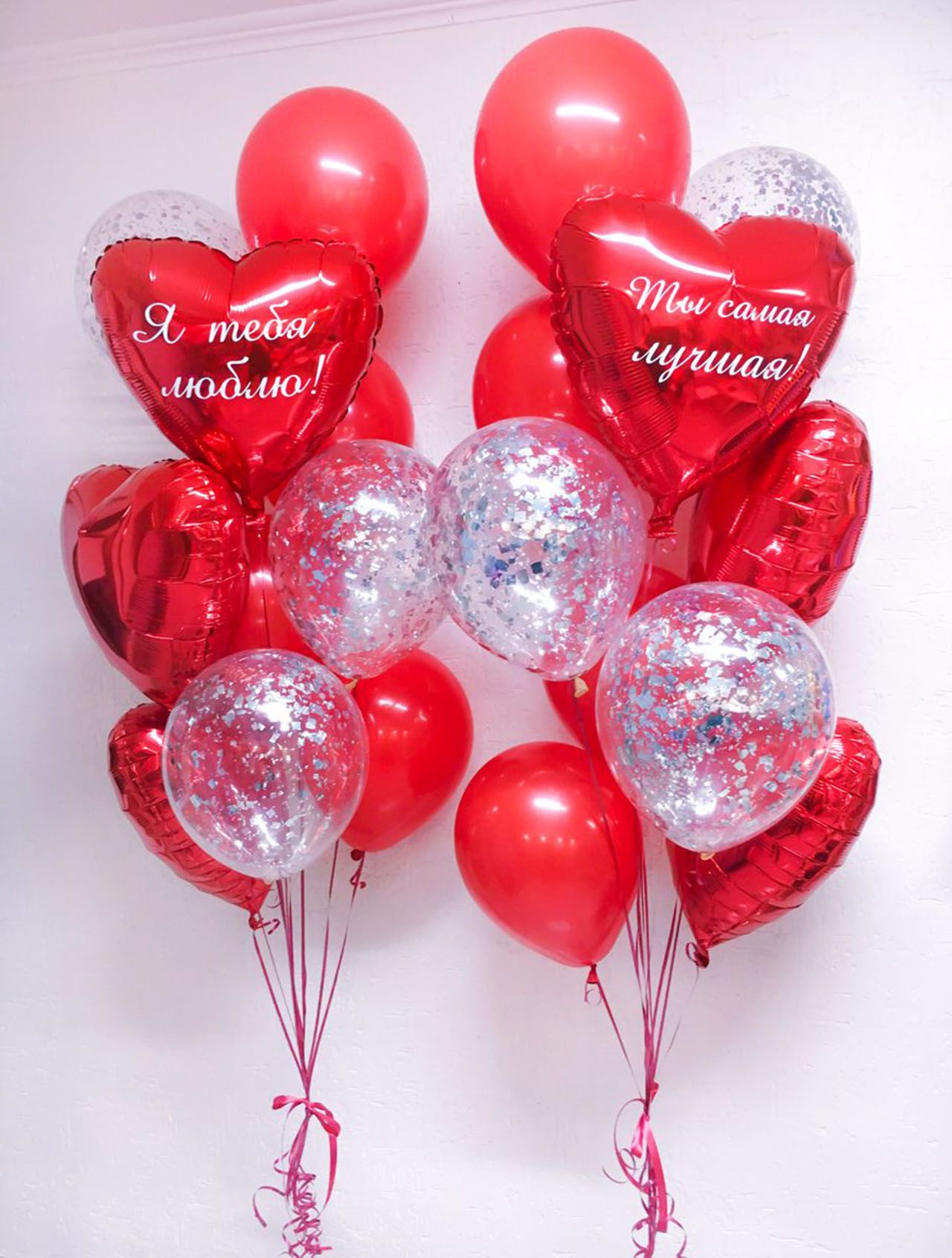 - 6 красных фольгированных сердец;