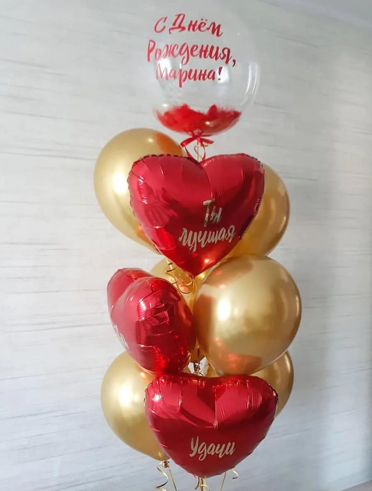 - 3 красных фольгированных сердца;