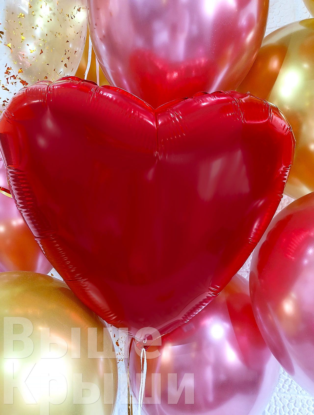 - 4 фольгированных шарика красное сердца;