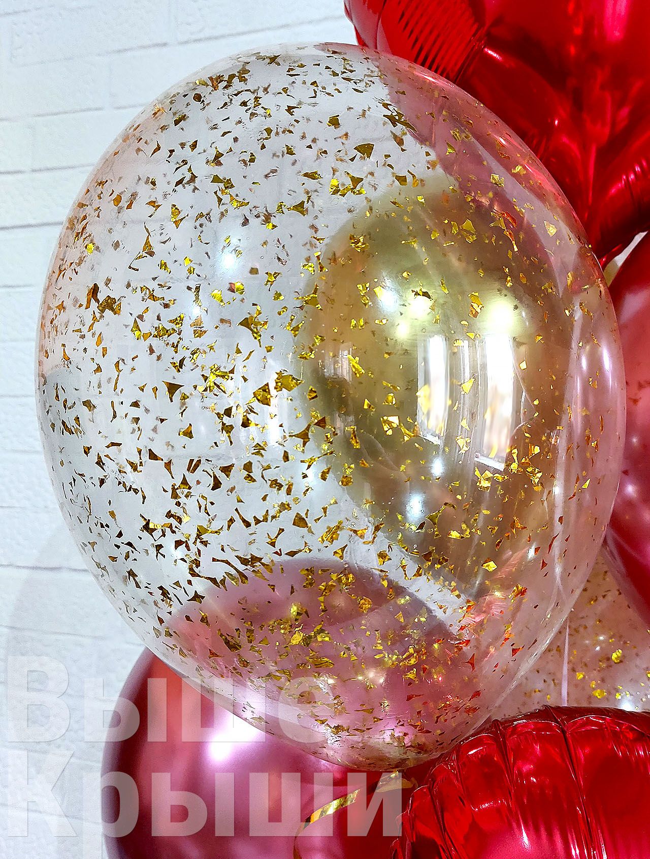 - 4 шарика с золотым конфетти дроблённым;