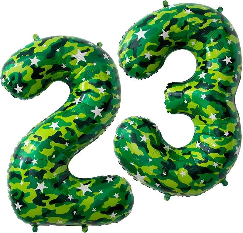 Отметьте День защитника Отечества стильно с нашими воздушными шарами в форме цифр 2 и 3 с камуфляжным окрасом! Эти шары идеально подойдут для празднования 23 февраля, добавив особую атмосферу и подчеркнув мужественность и героизм. Камуфляжный дизайн создаст неповторимую тематическую обстановку на вашем торжестве.