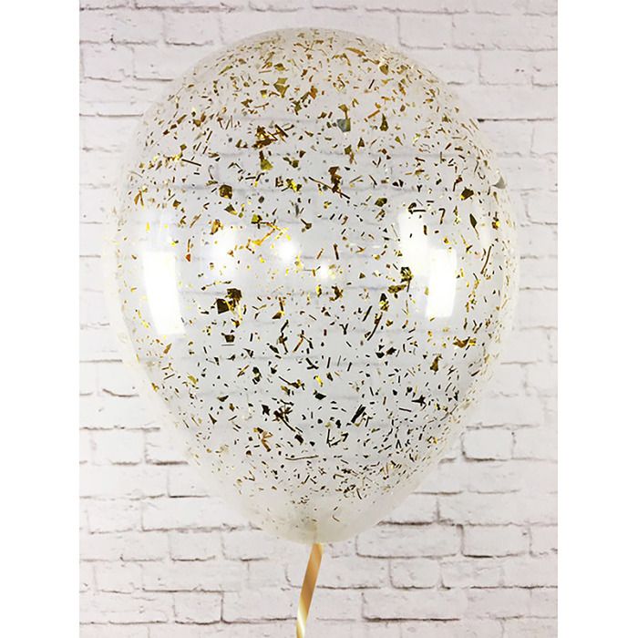 Прозрачный 30см с дроблённым конфетти (золото)