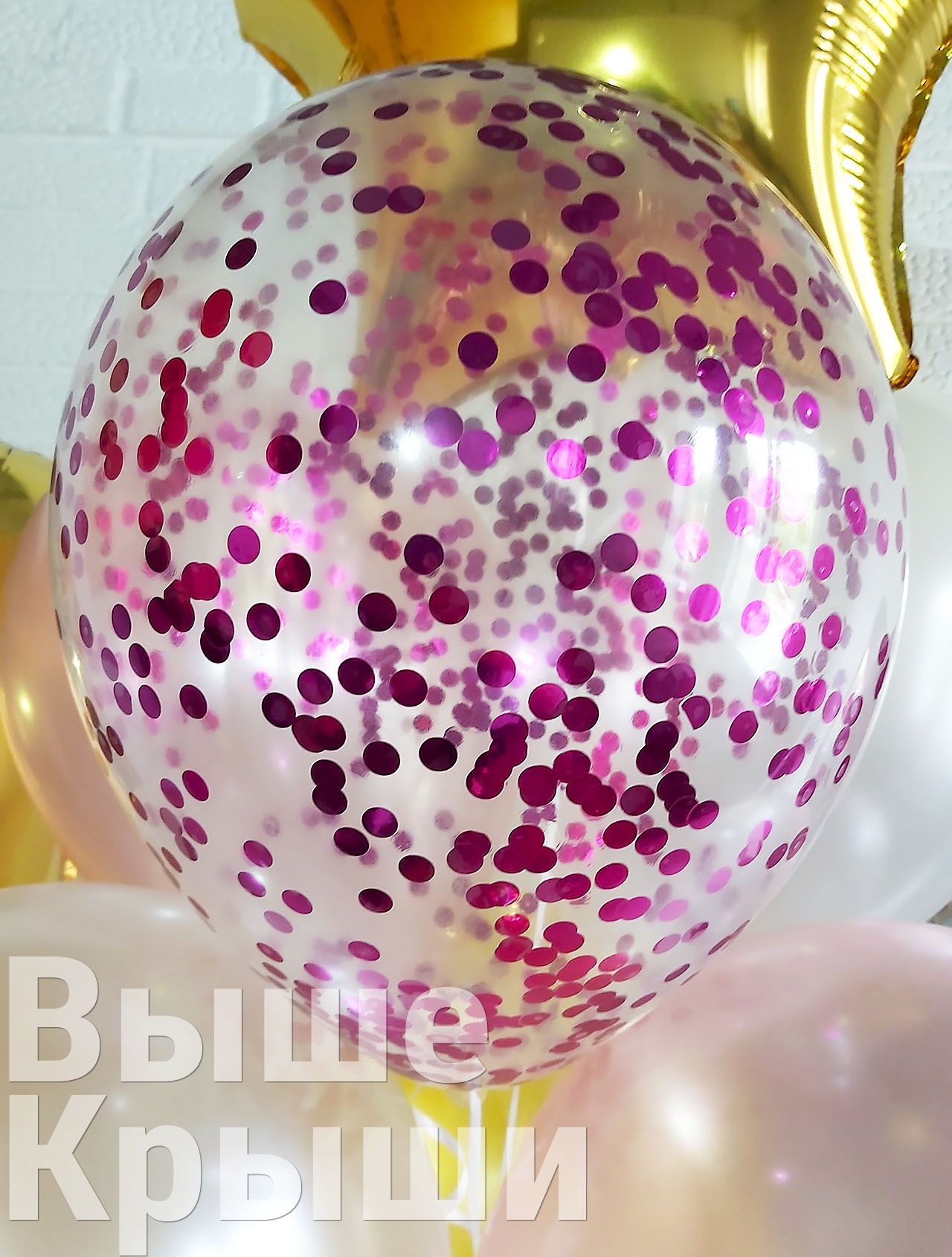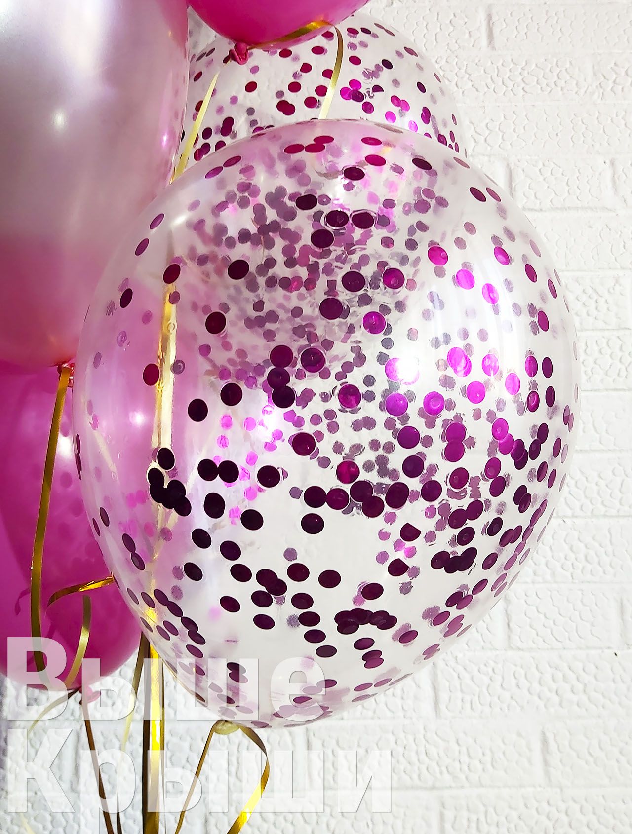 Прозрачный 30см с конфетти (малиновые круги)