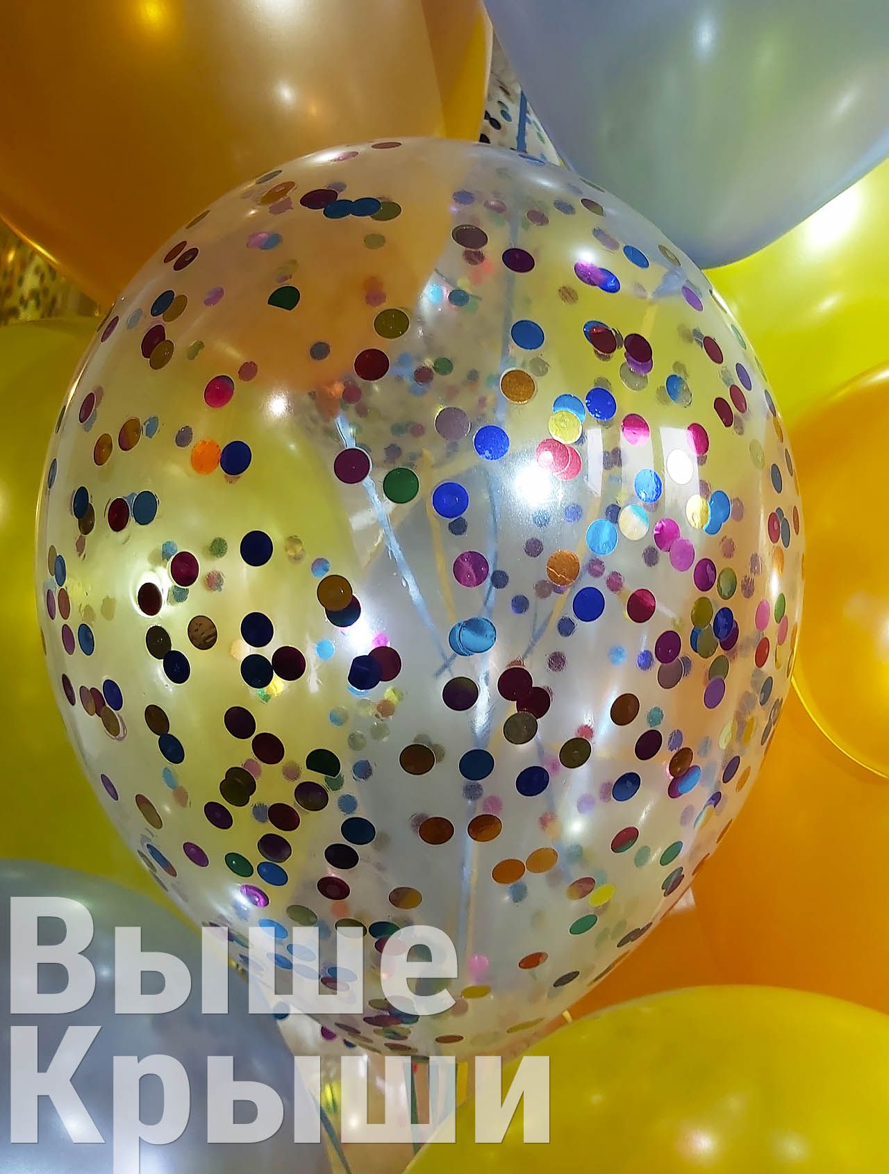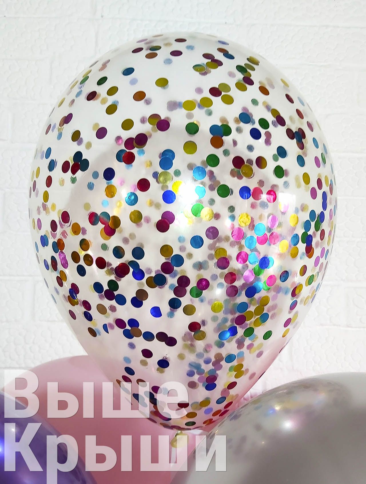 Прозрачный 30см с конфетти (разноцветные круги)