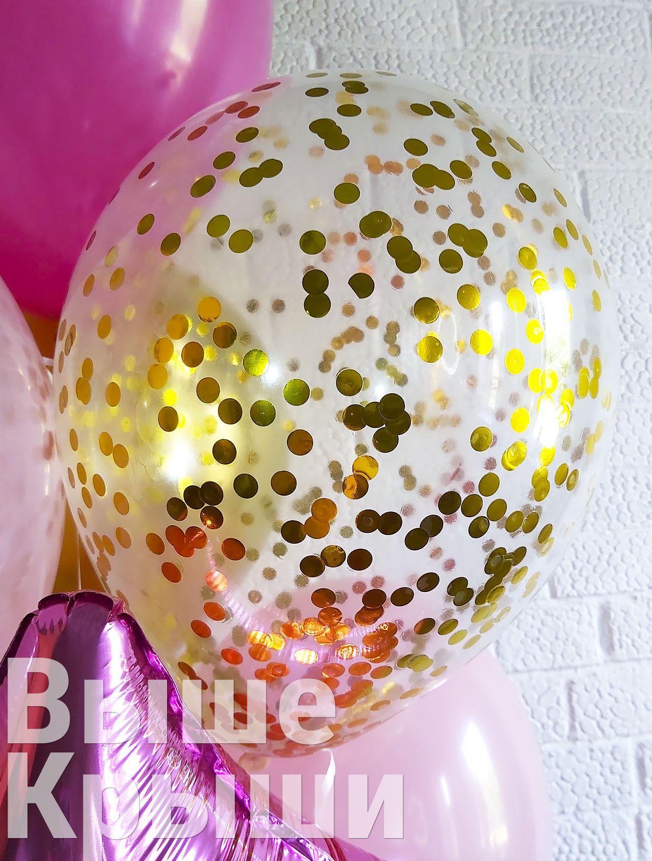 Наши прозрачные воздушные шары с золотым круглым конфетти изготовлены из высококачественного латекса и наполнены гелием, что обеспечивает длительное время полета и прочность. Блестящее золотое конфетти внутри шара создаёт эффектный и стильный акцент, оживляя любое пространство и придавая вашему торжеству уникальный шарм.