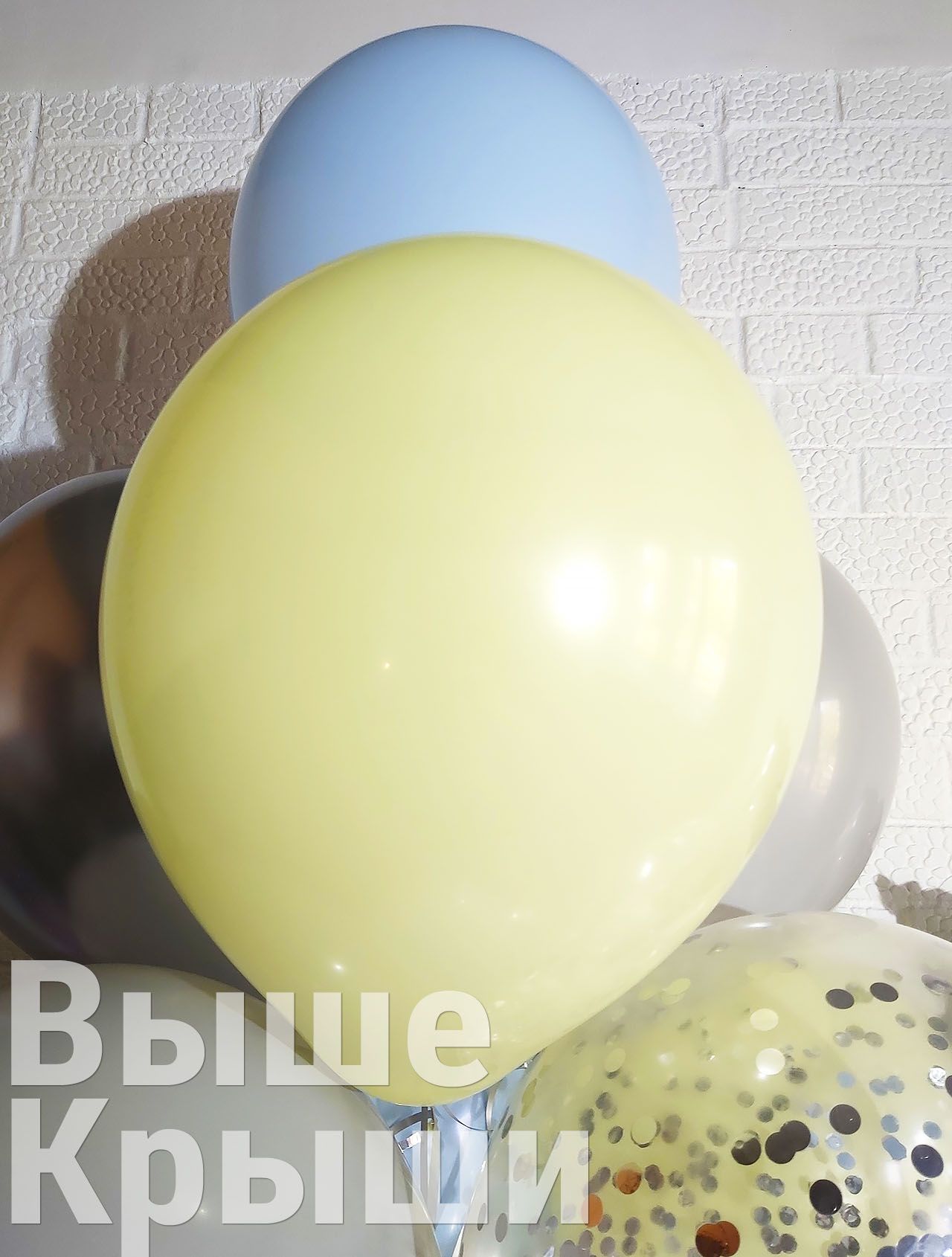Воздушные шары цвета макарунс светло-жёлтый из нашей коллекции изготовлены из высококачественного латекса и наполнены гелием, что гарантирует длительное время полета и прочность. Этот нежный и светлый оттенок жёлтого прекрасно смотрится как самостоятельное украшение, так и в сочетании с шарами других цветов.
